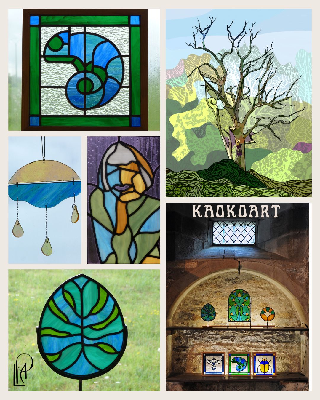 Vitrailliste de formation, j'essaie de perpétuer les techniques traditionnelles tout en les dissociant de leur dimension religieuse ; tout comme les mouvements "art nouveau" et "art déco", qui avaient déjà fait entrer le vitrail en tant qu'objet décoratif au travers de l'architecture d'intérieur. Même si, je pratique à l'occasion l'incrustation de vitraux sur-mesure pour les particuliers, mes créations sont davantage vouées à un usage purement décoratif. La lumière est l'élément indissociable du vitrail par excellence parce qu'elle lui donne vie en traversant la transparence des verres colorés tout en projetant leur reflets apportant ainsi une dimension presque magique et méditative à ces objets. Ma démarche artistique est nécessairement influencée par les contraintes techniques du vitrail, mais en réalité, c'est plutôt ma démarche initiale du pastel qui m'a orienté vers le vitrail en raison de leur similitudes. J'ai toujours cherché à représenter mes sujets de manière stylisée et synthétique ; c'est ce qui m'a mené au cloisonnement des zones essentielles et à la fusion des détails en tant que lignes et couleurs.